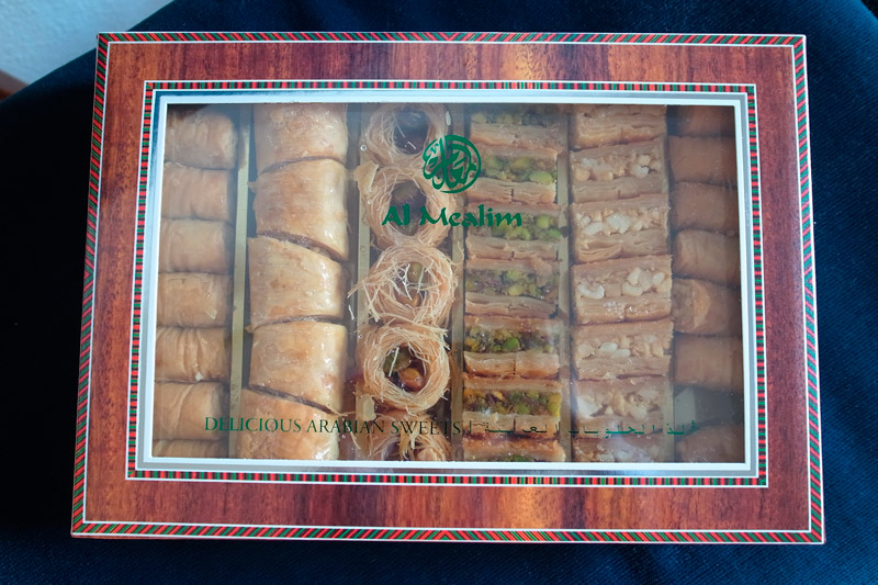 バグラヴァ。行きに買って、帰りにも自分用に買って行きました。砂糖甘いお菓子が好きな人には本当におすすめです。日本では通販で一部手に入るようですが、種類の多さは現地ならではだと思います。これを食べるためだけにまたドーハに行くのもありかな…。